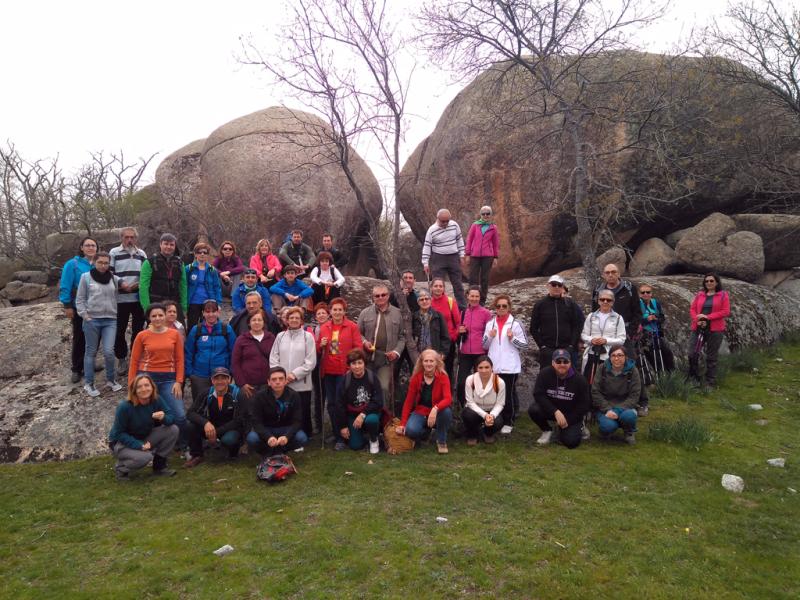 La excursión ha comenzado en el pueblo de Ortigosa del Monte, tomando el viejo "Camino de Fuentemilanos". A los pocos metros la expedición ya empezó a encontrarse con algunos de los numerosos bloques de piedra que salpican la zona hasta que se llegó a la verdadera cantera, en el corazón de El Berrocal, con enormes bolos de granito muy redondeados y tolmos en la que los excursionistas se "perdieron" en este laberinto monolítico, dominado por los robles y en el que se mezclan encinas, fresnos, arces, majuelos o rosales silvestres.
