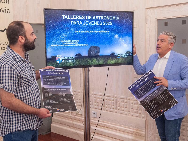Un año más, la Diputación de Segovia colabora con la empresa Astronomía Cercana, dirigida por Carlos González, para la realización de los talleres de astronomía para jóvenes en los meses de verano. Tal y como ha apuntado esta mañana en la rueda de prensa el diputado de Cultura, Juventud y Deportes, José María Bravo, “se trata de un programa que persigue el objetivo de dotar a los jóvenes segovianos de una formación astronómica a la vez que se les ofrece una actividad lúdica, educativa y divertida para las noches de julio, agosto y septiembre”.