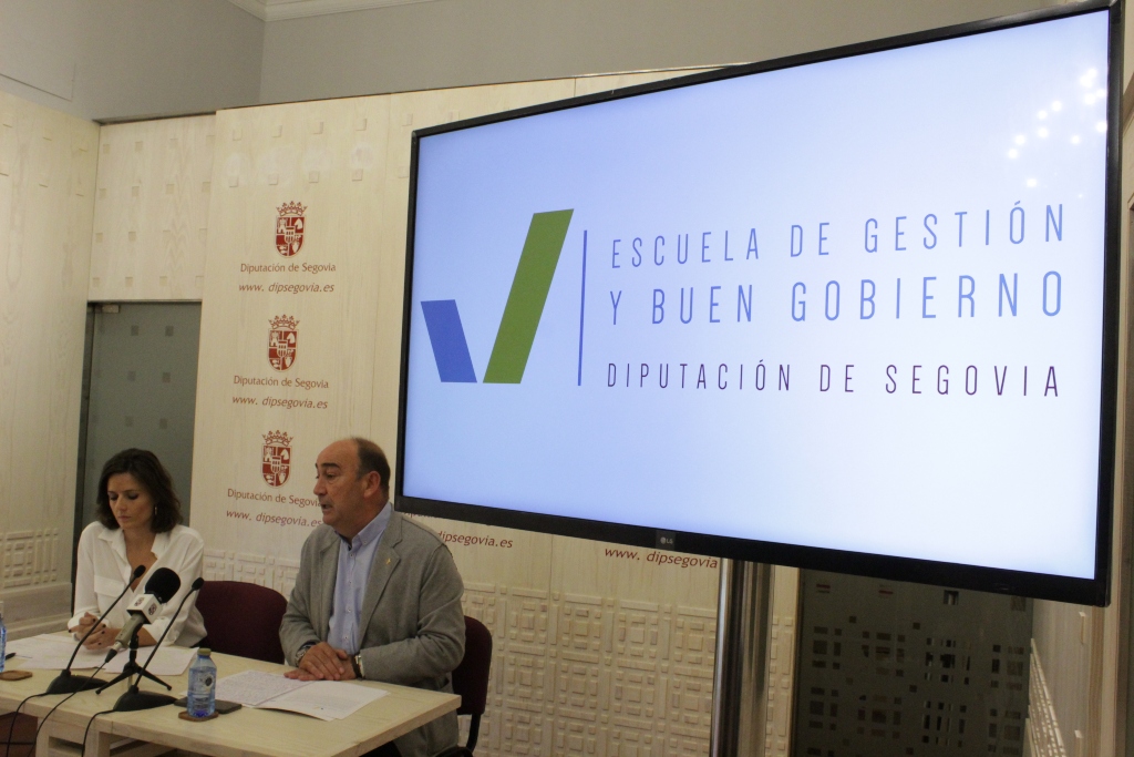 El presidente de la Diputación, Miguel Ángel de Vicente, y la diputada del Servicio de Asistencia a Municipios, Modernización y Relaciones Institucionales, Sara Dueñas, han presentado esta mañana la Escuela de Gestión y Buen Gobierno, uno de los proyectos más ambiciosos de estos primeros meses de legislatura, con el que la institución provincial pretende ofrecer de manera gratuita a las personas que cada día trabajan en los ayuntamientos de la provincia una serie de herramientas cognitivas que puedan mejorar la atención prestada a los ciudadanos.