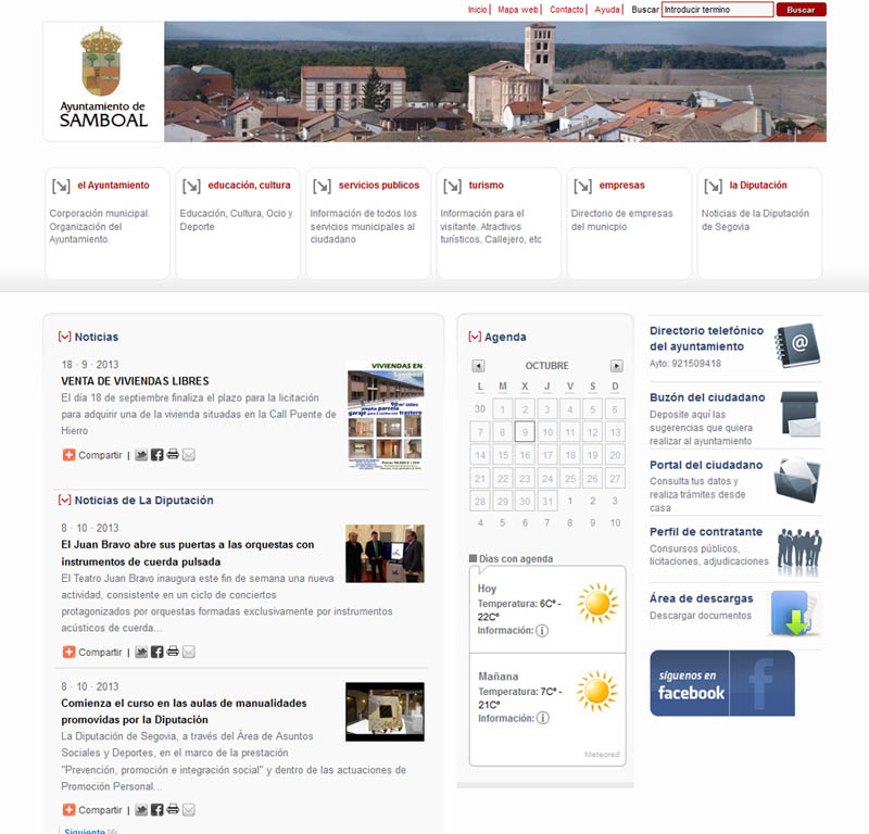 Enmarcada en esta línea de ayudas, la Institución ha desarrollado la nueva web de Samboal, www.samboal.es, donde se puede encontrar toda la información actualizada de la propia localidad, así como una agenda de eventos, con las próximas actividades a desarrollar. Asimismo, desde el Ayuntamiento de Samboal se ha creído conveniente que sus vecinos tengan la posibilidad de consultar los actas de los plenos a través de este portal, por ello se incluye un apartado con los últimos documentos plenarios.