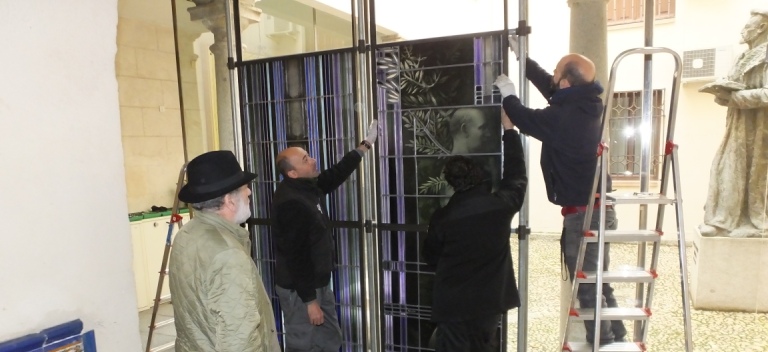 Quienes han visitado la muestra han tenido además la oportunidad de ver el boceto y el cartón a tamaño natural que Muñoz de Pablos confeccionó, como paso previo a la elaboración de la vidriera.
